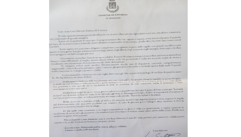 Il Sindaco Luca Salvetti nel comunicato stampa chiarisce la posizione dell’amministrazione comunale. Questo il testo del comunicato del Sindaco Salvetti: “In queste ore ho ricevuto, come rappresentante istituzionale della città, una lettera da parte dell’attuale presidente del Livorno calcio Rosettano Navarra. Nella Lettera si racconta con quale spirito ed entusiasmo l’imprenditore si sia avvicinato al…