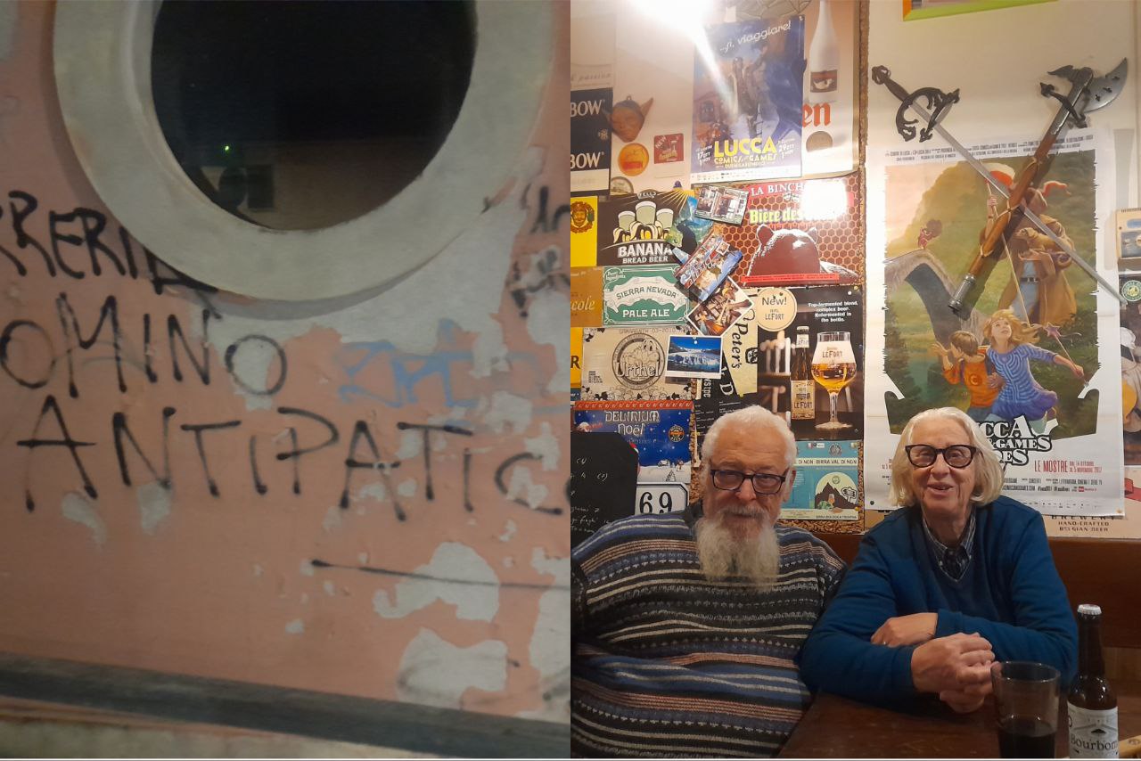 Un graffito in via Garibaldi è ormai divenuto di uso comune, descrivendo il gestore di un locale labronico che ormai ha fatto suo quel marchio Il locale è raccolto e accogliente, un pub d’altri tempi, e i coniugi Sandro e Gioia non esitano un secondo ad accoglierci e a raccontare la storia dietro il nome…