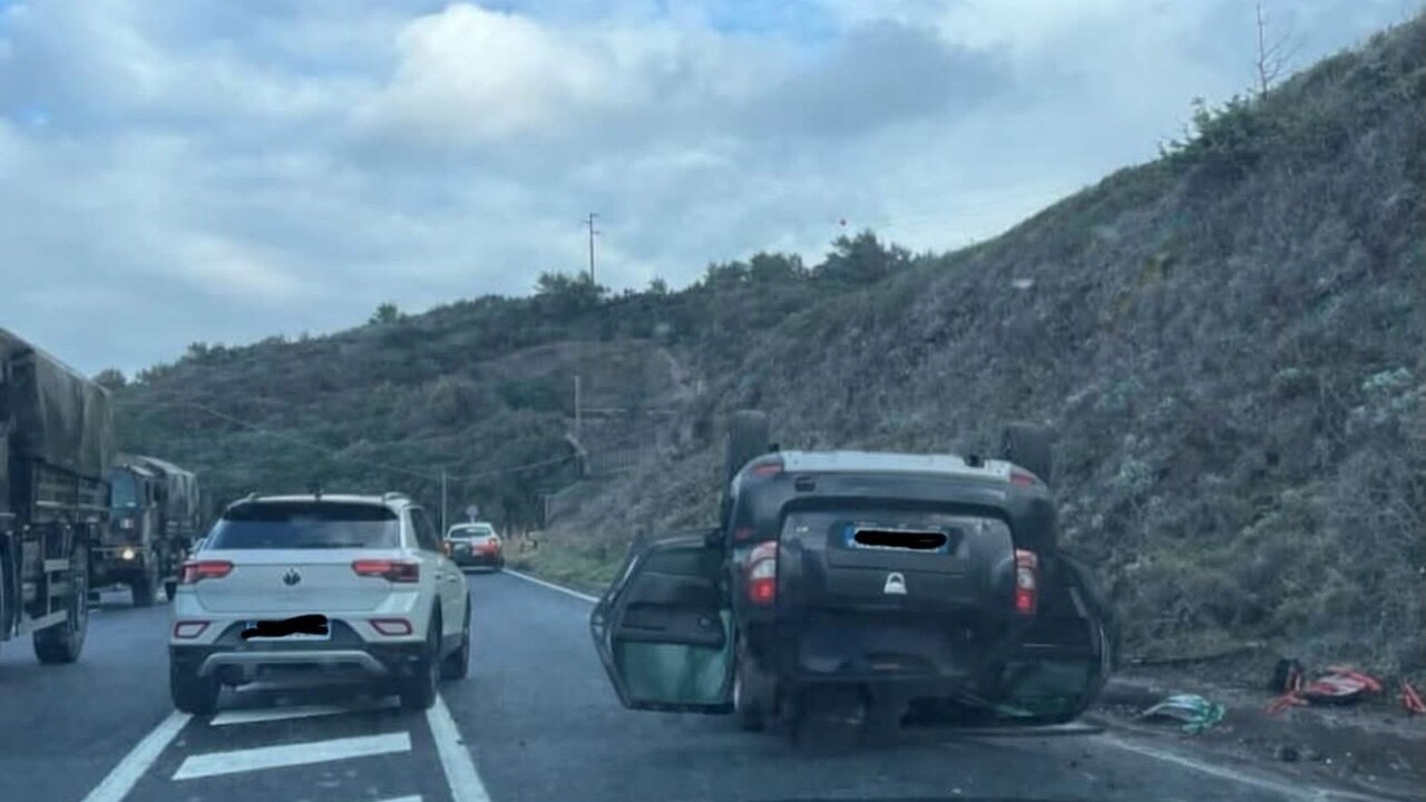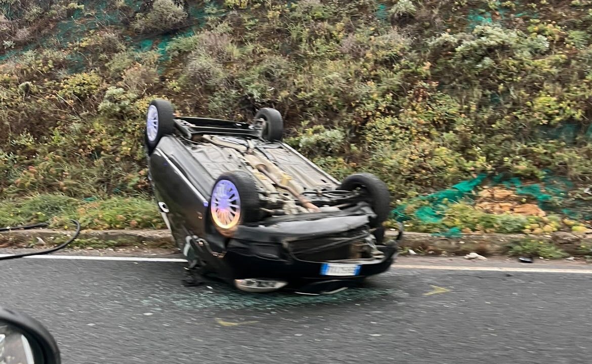 Automobile con a bordo madre e figlio si ribalta sul Romito