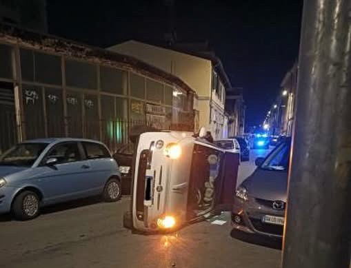 Auto si ribalta sul viale Alfieri