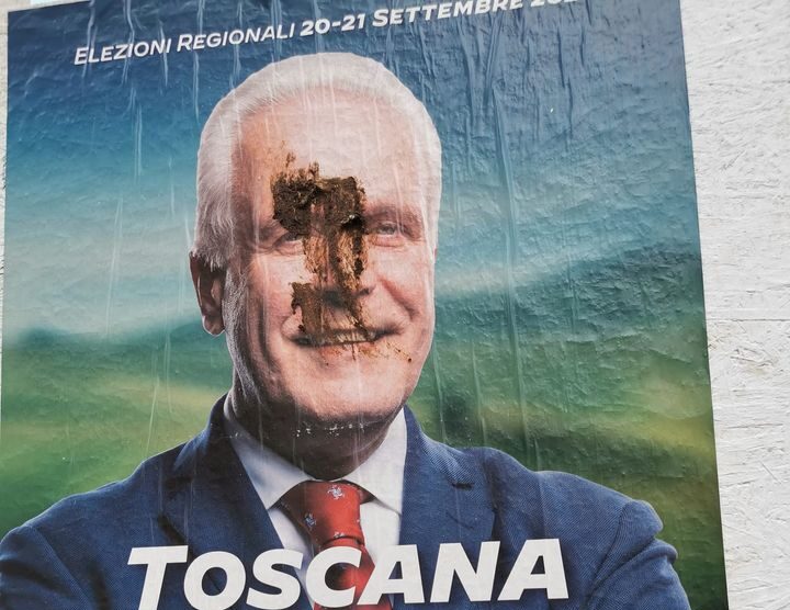 Elezioni regionali, imbrattato un poster elettorale del candidato presidente Giani