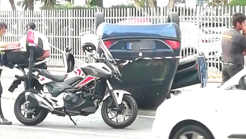 Nel tardo pomeriggio di oggi un’auto si è ribaltata nei pressi dell’incrocio tra Via Meucci e Viale Mameli.