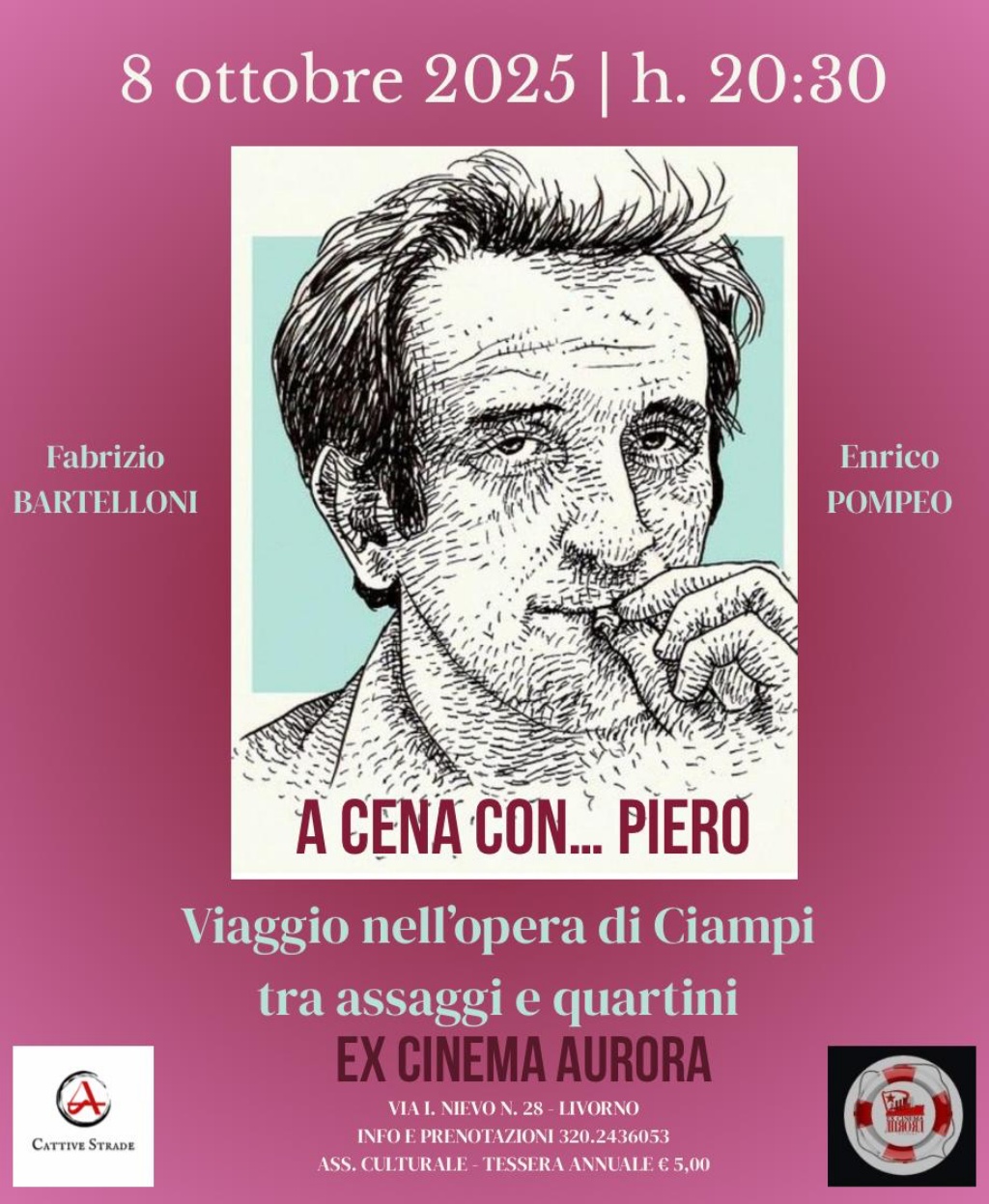 Lunedì 15 settembre all’ex Cinema Aurora un viaggio guidato attraverso la vita e la carriera artistica di Piero Ciampi “Lungo treno del Sud, dove hai portato quella dolce fanciulla che tanto amai?” questo è uno dei versi di una delle più note canzoni scritte da Piero Ciampi, il poeta e cantautore “fino all’ultimo minuto” come…