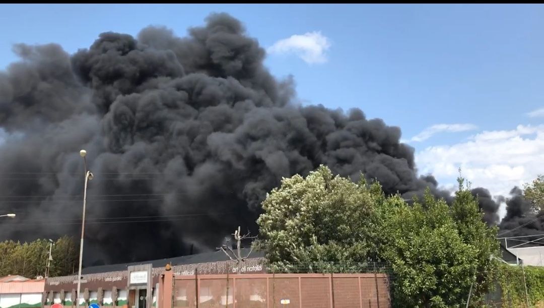 Il Magazzino “Ghiomelli”, in via Firenze, avvolto dalle fiamme