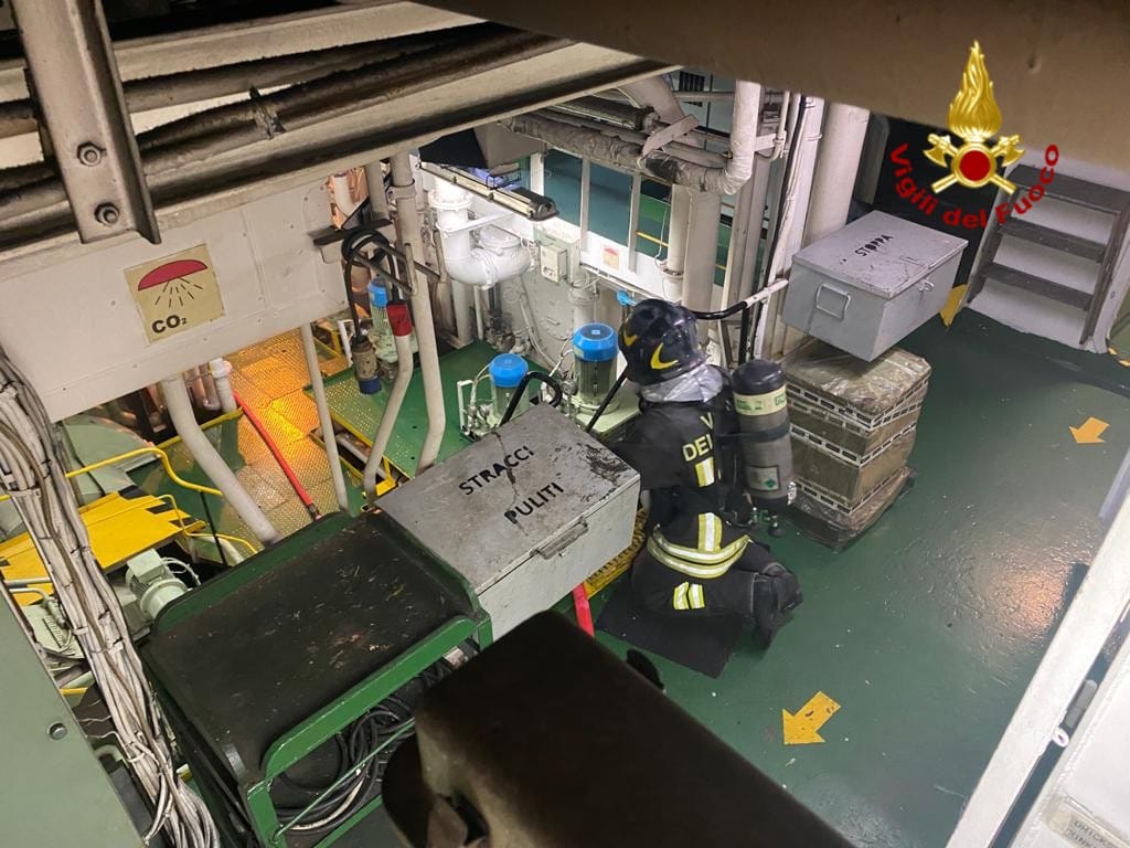 Porto di Livorno, incendio sulla M/N PIetro Manunta – Moby Cargo