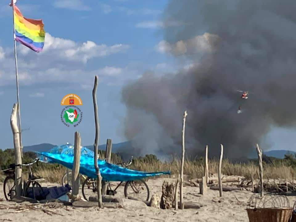 Nuovo incendio boschivo sul lungomare di Torre del Lago