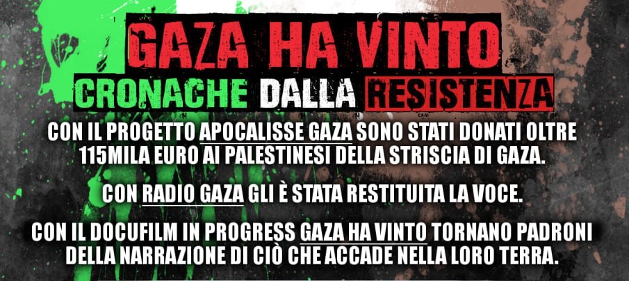 La proiezione avrà luogo il 28 novembre alle ore 21 presso la sede in Borgo Cappuccini 25 La campagna “Apocalisse Gaza”, Radio Gaza e il nuovo episodio del film in progress: “Gaza ha vinto” La campagna “Apocalisse Gaza” è stata lanciata il 20 giugno 2025 da Michelangelo Severgnini (regista e scrittore) e Rabi Bouallegue (attivista…