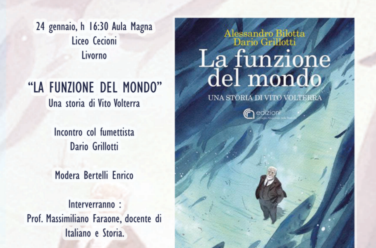 Prosegue il ciclo di incontri dedicati alle graphic novel organizzato dal Liceo Cecioni, con un appuntamento speciale in programma il 24 gennaio alle ore 16:30 nell’Aula Magna dell’istituto di via Galilei Protagonista dell’evento sarà Dario Grillotti, fumettista e illustratore, co-autore insieme ad Alessandro Bilotta di “La funzione del mondo. Una storia di Vito Volterra”, pubblicata da …