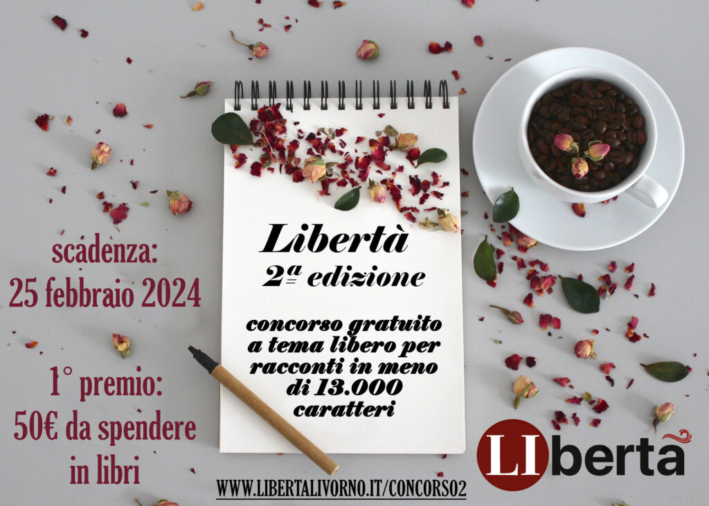 Partecipa al movimento culturale: Libertà Livorno e Caffè del Castagno Libertà Livorno, movimento apartitico, nonviolento e senza scopo di lucro, indice insieme al blog letterario Caffè del Castagno il bando del concorso “Libertà 2a edizione” per racconti in meno di 13.000 caratteri, che si terrà dal 31 ottobre 2023 al 25 febbraio 2024. La partecipazione è gratuita…