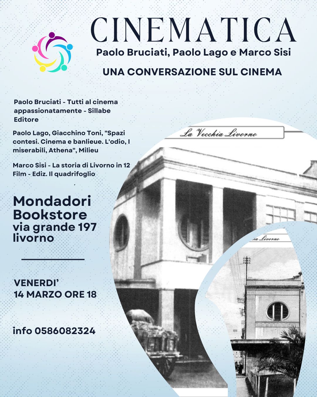 Venerdì 14 marzo presso la Libreria Mondadori si parlerà di cinema e non solo attraverso i libri di Marco Sisi, Paolo Bruciati e Paolo Lago