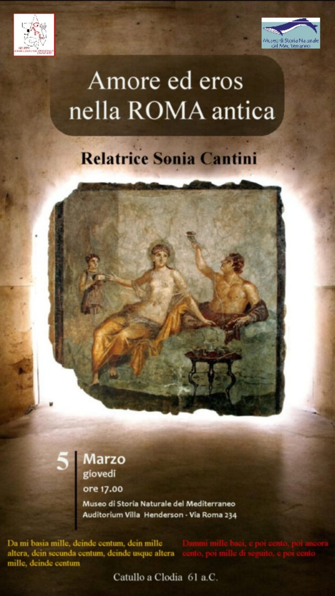 Giovedì 5 marzo se ne parla al Museo di storia naturale del Mediterraneo con l’intervento di Sonia Cantini a cura del Gruppo Archeologico-Paleontologico Livornese La letteratura latina, a partire dalle opere di Catullo, e l’iconografia visibile, fra l’altro, nelle ville pompeiane ci offrono un’ampia rappresentazione di come fosse vissuta la sessualità nell’antica Roma. Di questo…