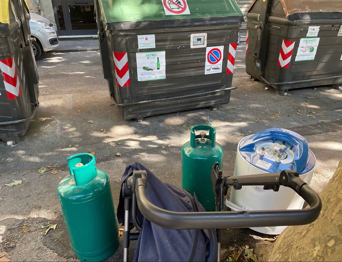 Ormai e’ consuetudine abbandonare rifiuti ingombranti ai cassonetti, ma le bombole del gas possono creare pericolo.