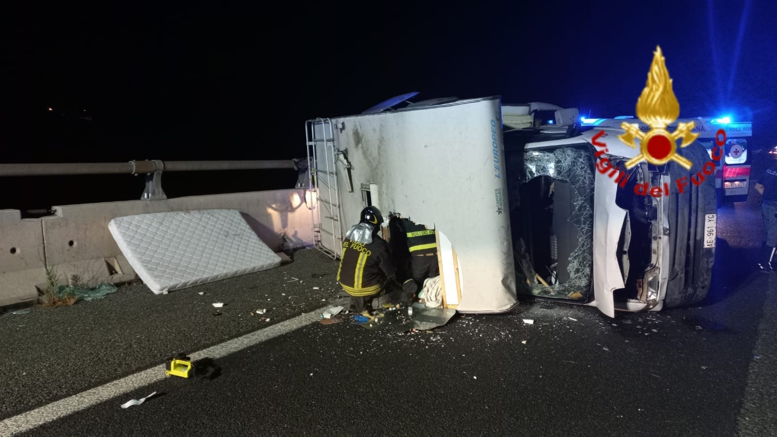 Camper si ribalta in autostrada