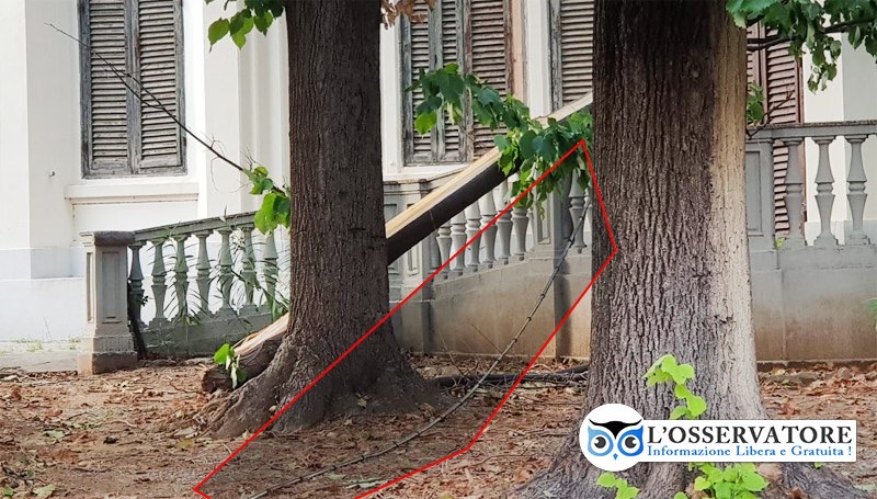 Si spezza un ramo e trancia un cavo elettrico all’ex sede del Corpo Forestale in via degli Asili