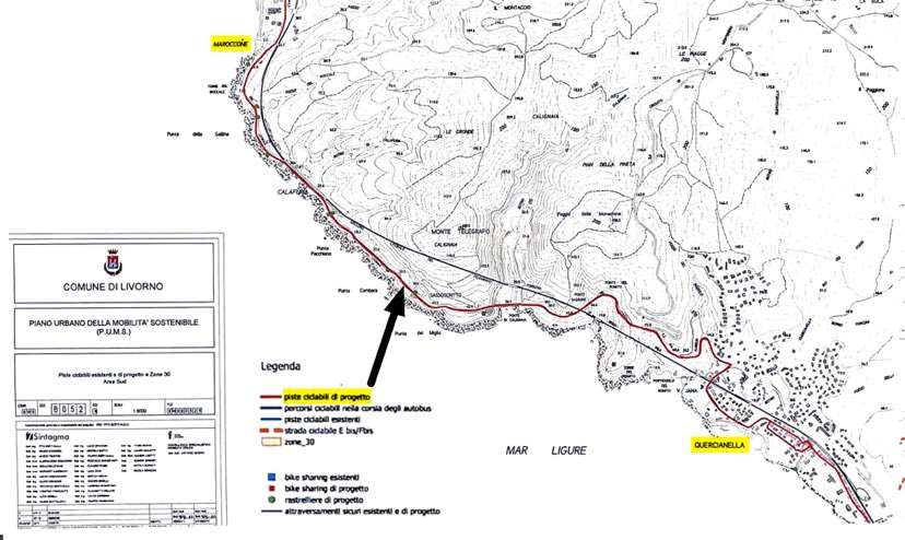 Il consigliere invia la mappa della ciclovia che ricalca il tracciato dell’attuale strada del Romito e potrebbe creare problemi di accesso al mare libero