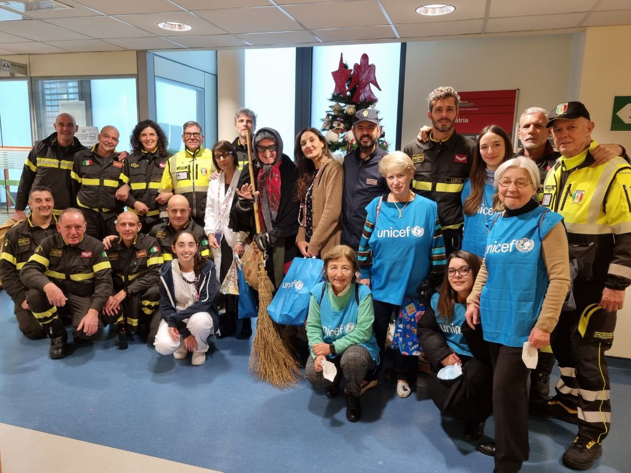 Lucca: festa in Pediatria con doni per i bambini, in collaborazione tra Vigili del Fuoco, UNICEF e Polizia