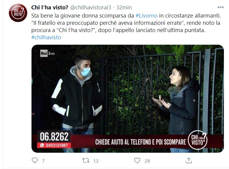 Al riguardo, ieri la Procura della Repubblica di Livorno chiarisce , che la donna non è sparita nel nulla e che sta bene
