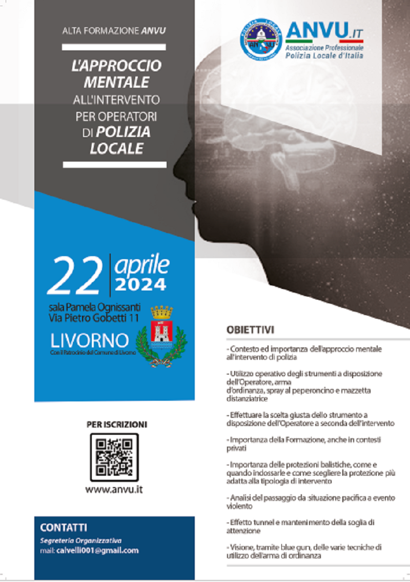 Lunedì 22 aprile dalle 8,30 alle 13,30 all’auditorium Pamela Ognissanti, via Piero Gobetti 11 Livorno, 18 aprile 2024 – “L’approccio mentale all’intervento per operatori di Polizia Locale” è il titolo del seminario di alta formazione che si svolgerà lunedì 22 aprile all’auditorium Pamela Ognissanti (via Piero Gobetti, 11) dalle 8.30 alle 13.30. Organizzato da Anvu,…