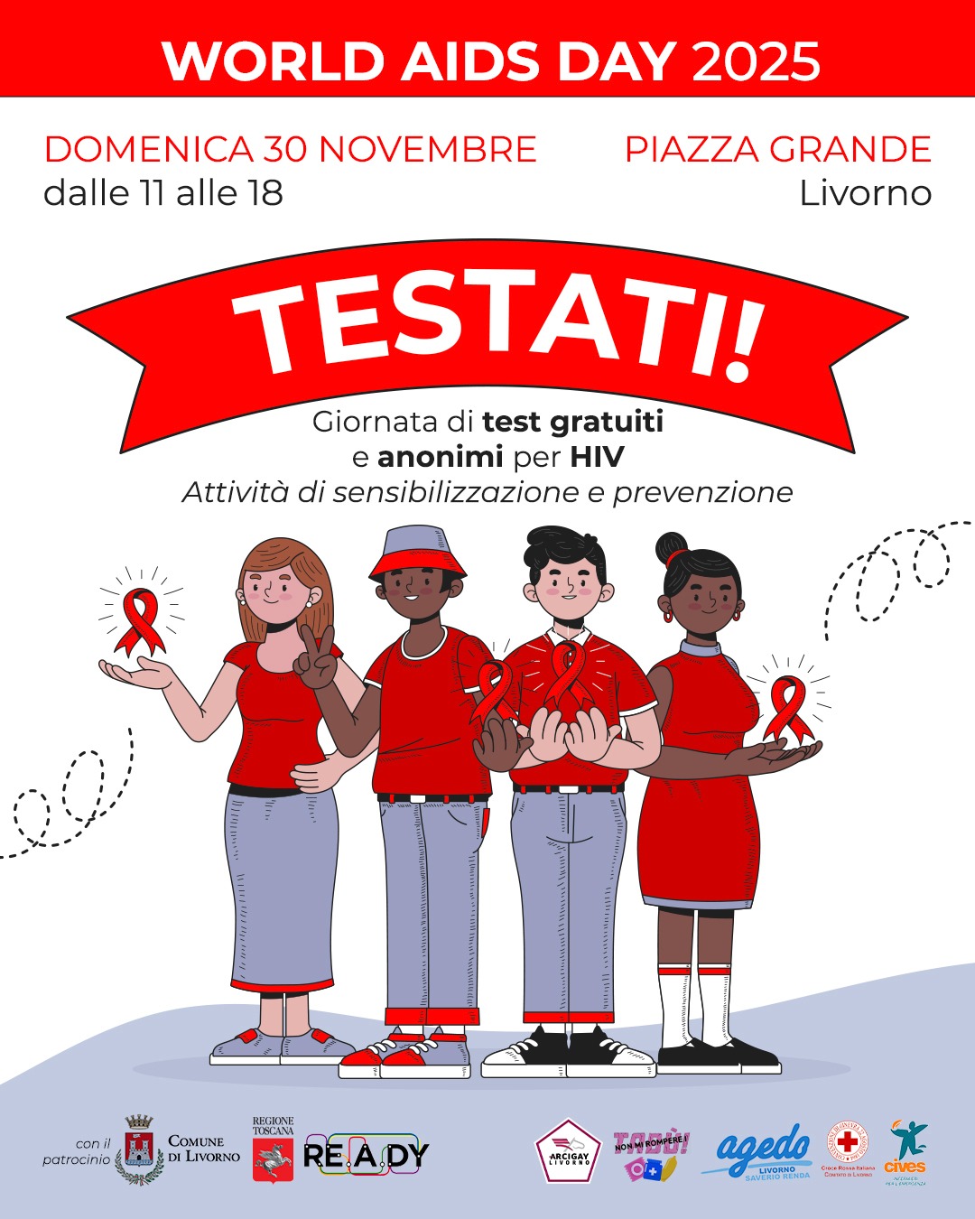 World AIDS Day 2025, giornata di prevenzione e test gratuiti per l’HIV organizzata da Arcigay e Agedo Livorno
