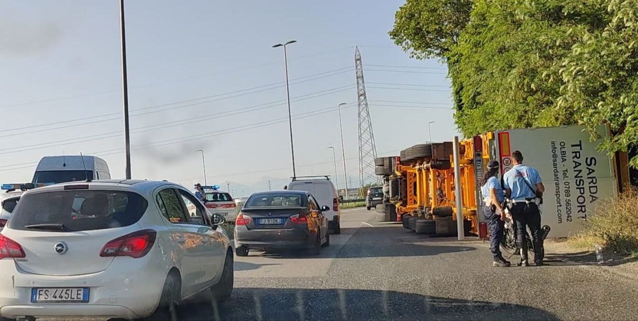 Tir ribaltato alla Variante di Stagno