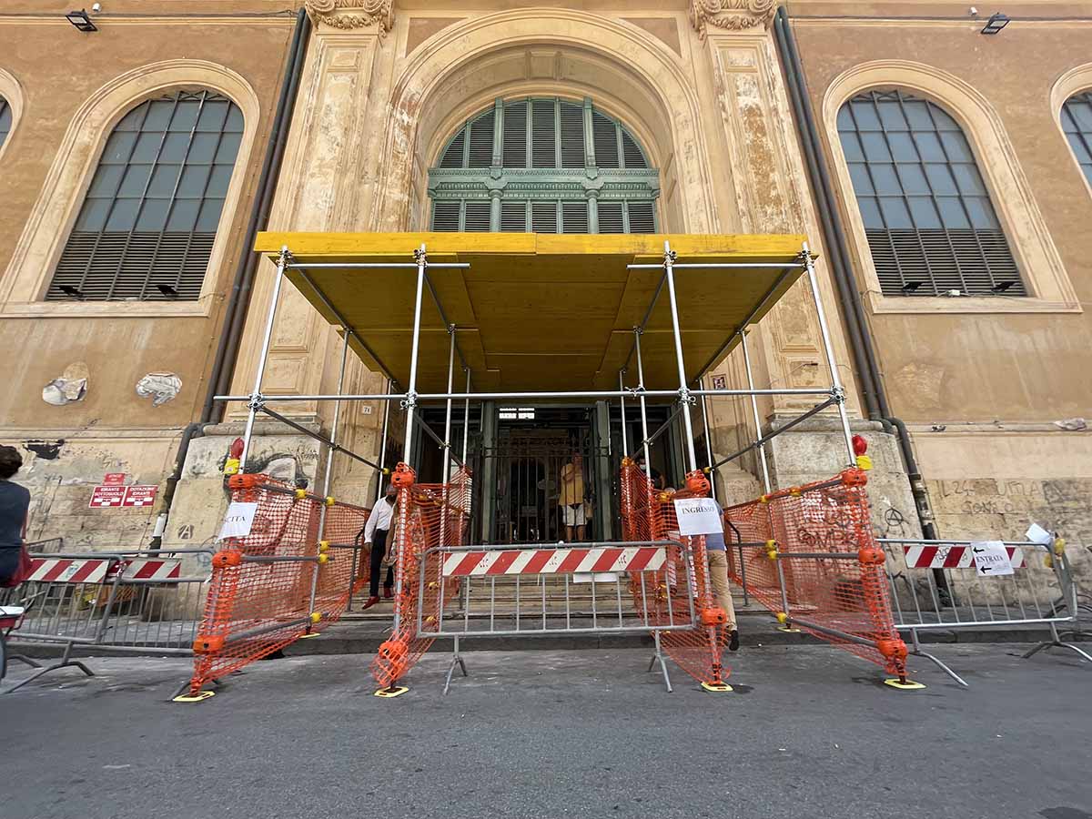 Cornicione pericoloso, transennata l’intera facciata del Mercato lato via Buontalenti