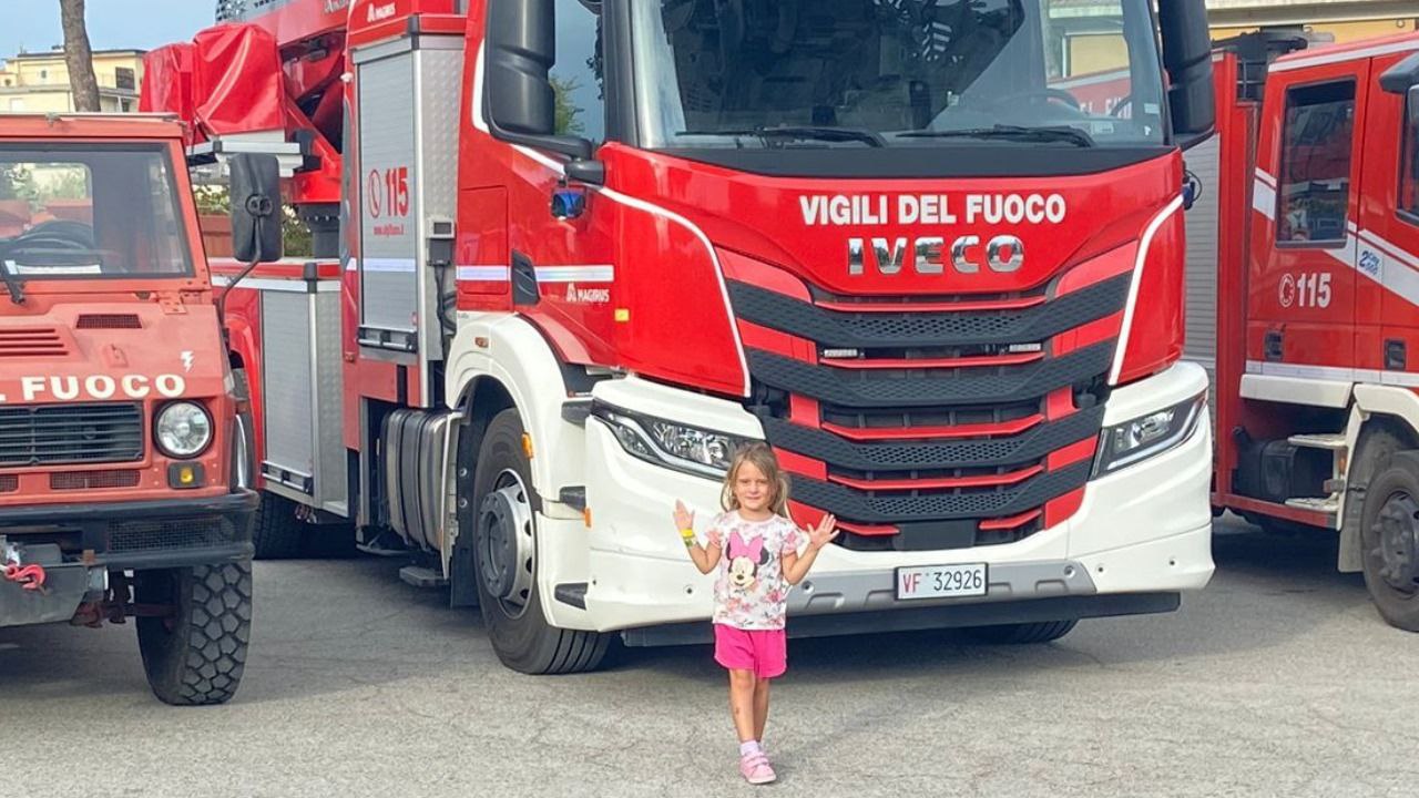 La piccola Adele eroina per un’ora grazie ai Vigili del Fuoco