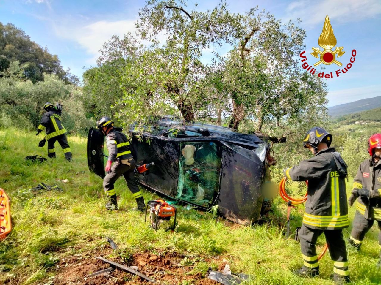 Auto finisce fuori strada, i Vigili del Fuoco di Livorno salvano il conducente