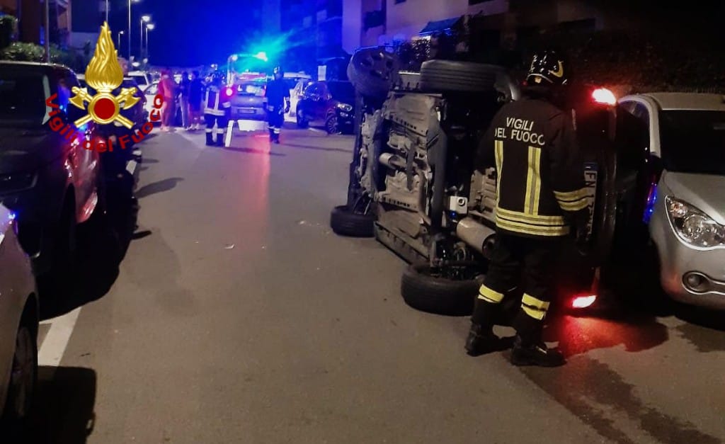 Auto si ribalta nella notte in via Goito