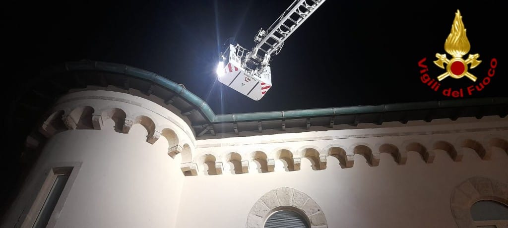Salvato un pavone dai Vigili del Fuoco sul tetto del Castello del Boccale