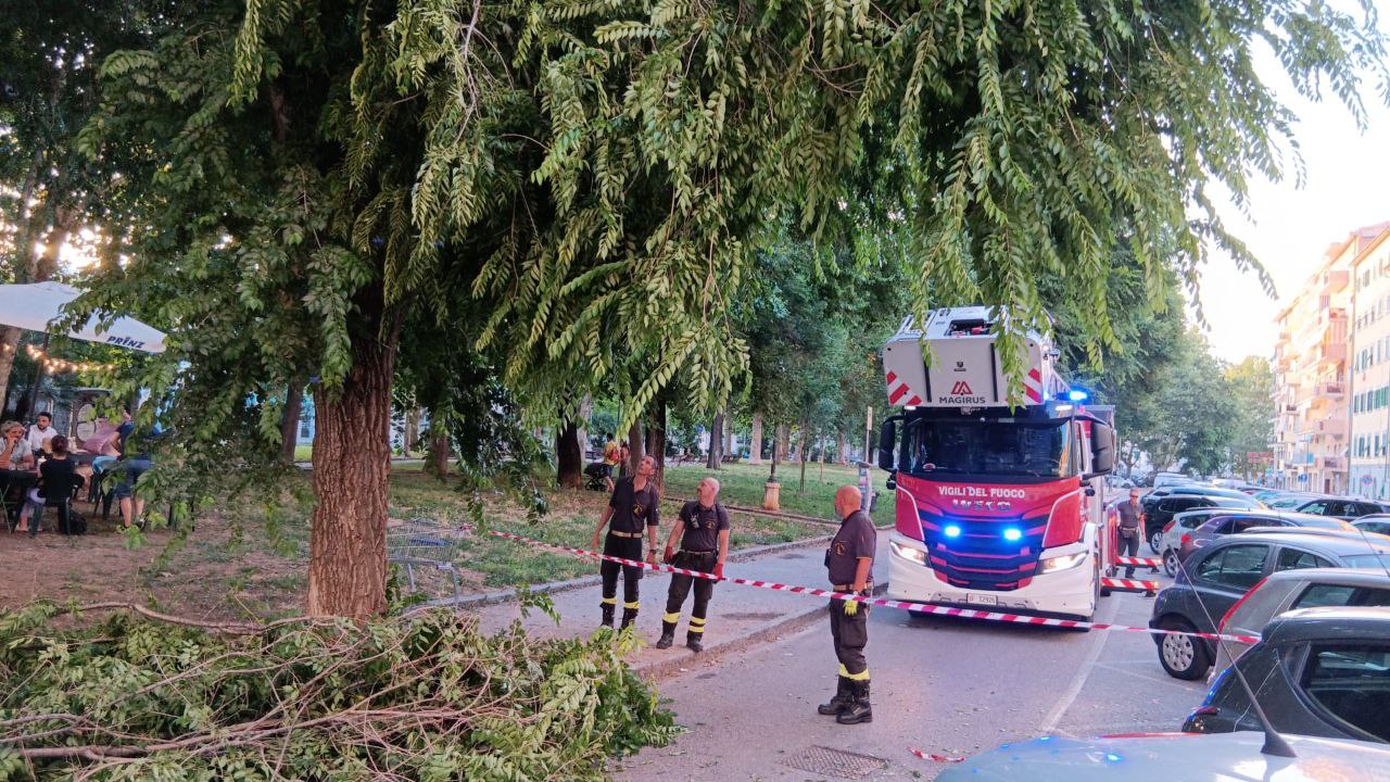 Crollano gli alberi in piazza Mazzini a causa della tempesta di venerdì