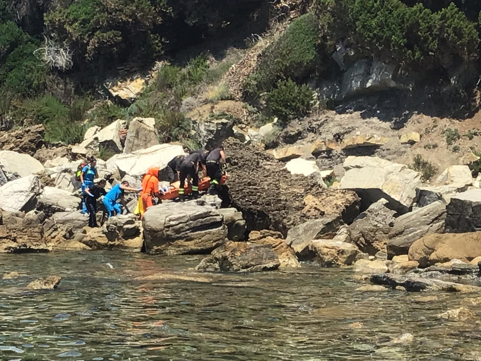 80enne cade sugli scogli al moletto Scaglietti di Rosignano