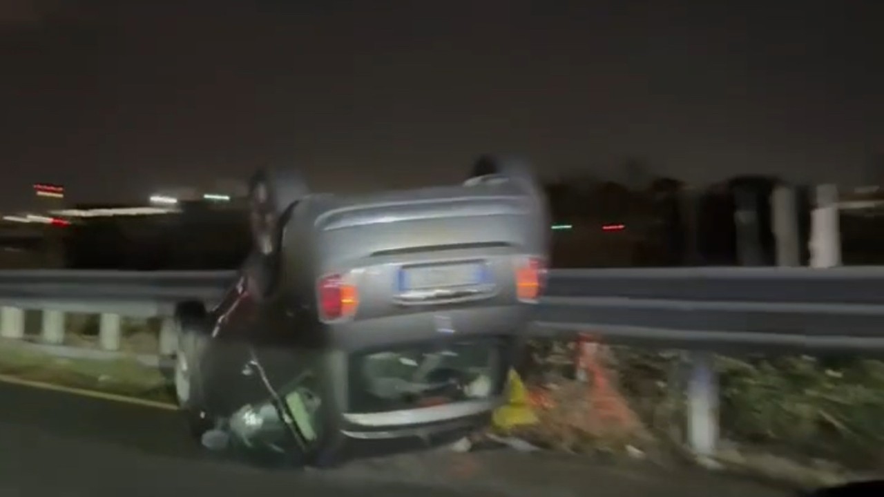 Auto si ribalta sulla variante all’uscita per Stagno