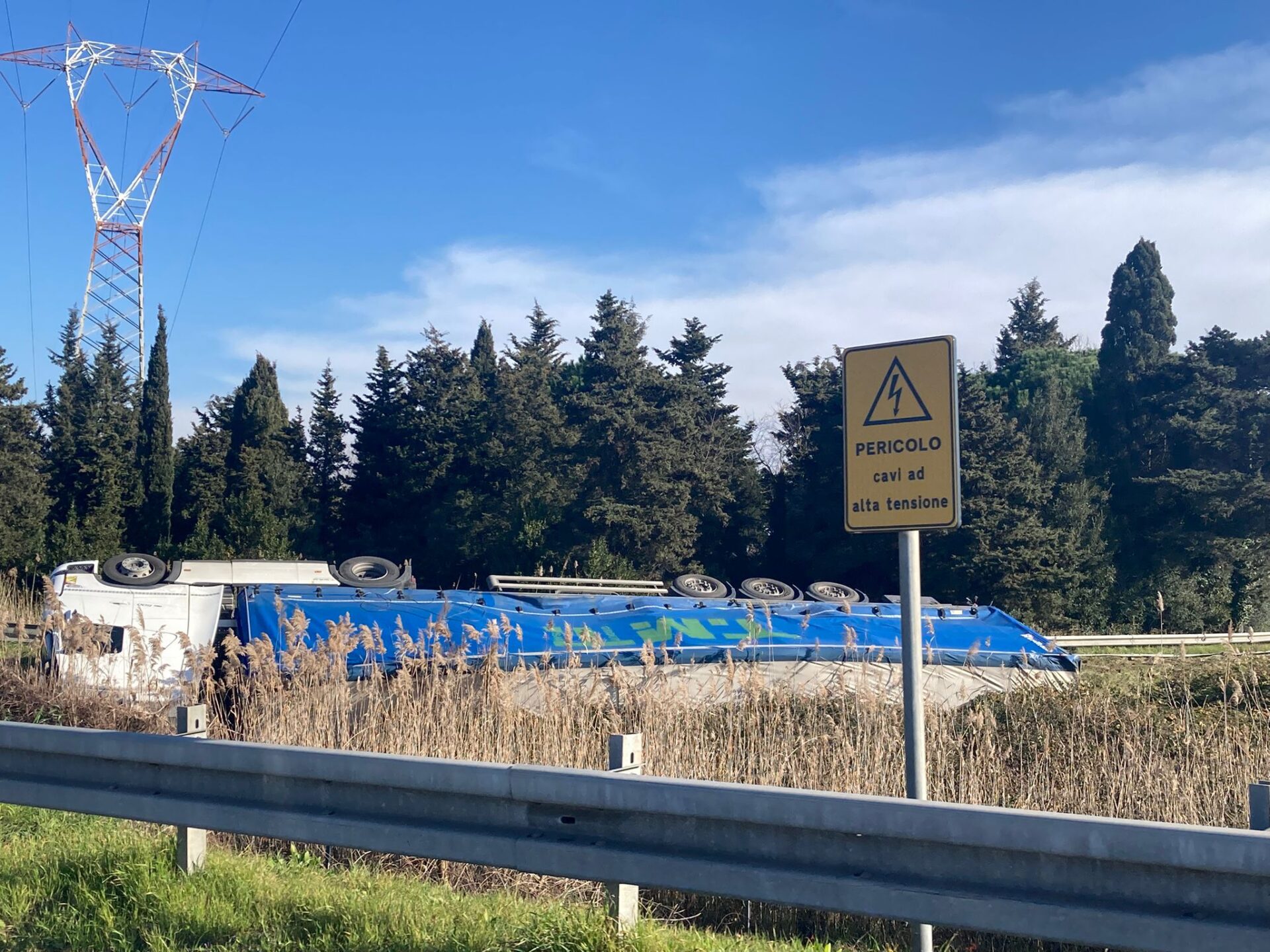 Tir ribaltato alla Variante di Stagno