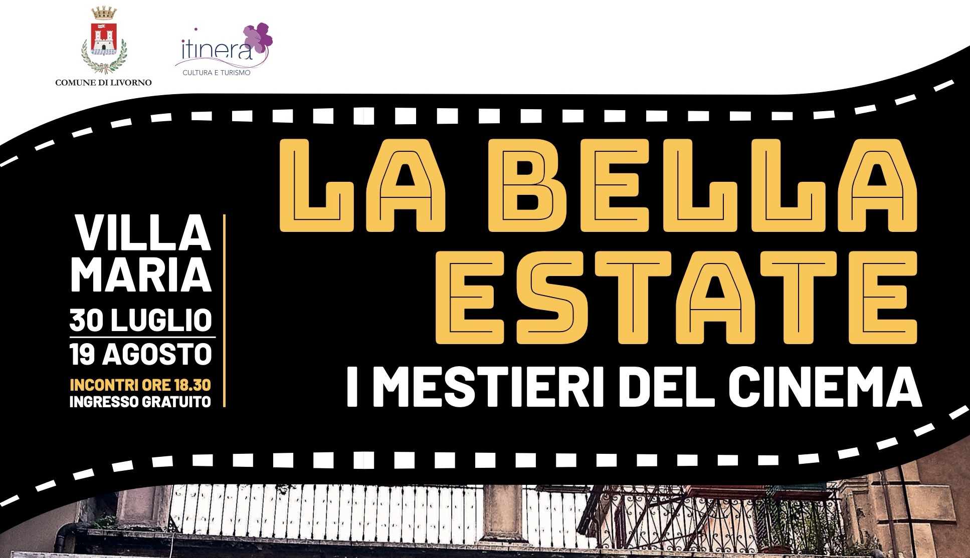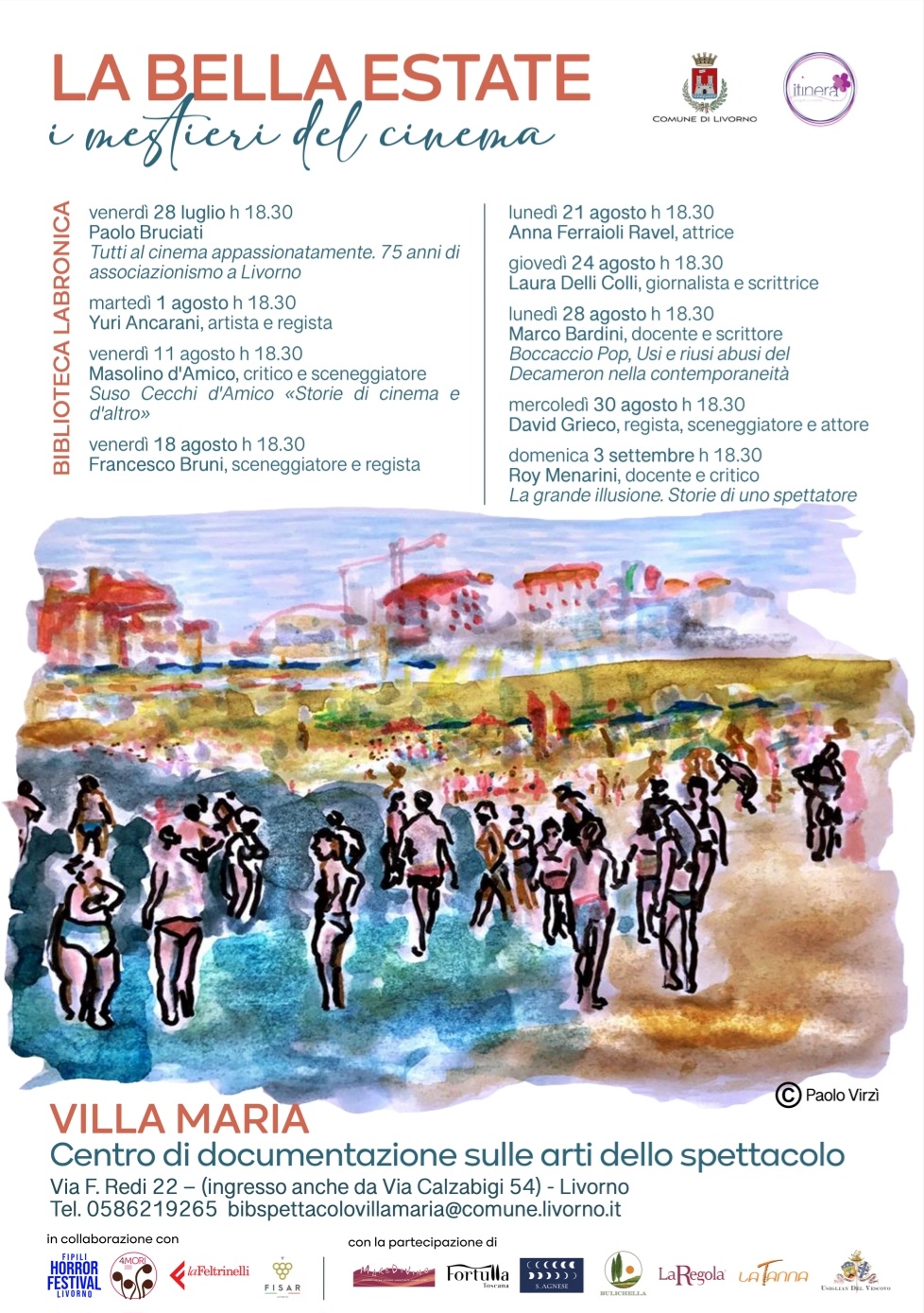 Appuntamento a Villa Maria dal 28 luglio al 3 settembre 2023 Riparte la rassegna “LA BELLA ESTATE I MESTIERI DEL CINEMA” quinta edizione, promossa dallaBiblioteca Labronica di Villa Maria, Centro di documentazione sulle arti dello spettacolo, eorganizzata da Cooperativa Itinera. L’iniziativa presenta l’incontro con operatori del cinema –registi, sceneggiatori, attori, truccatori, scenografi, scrittori e critici…